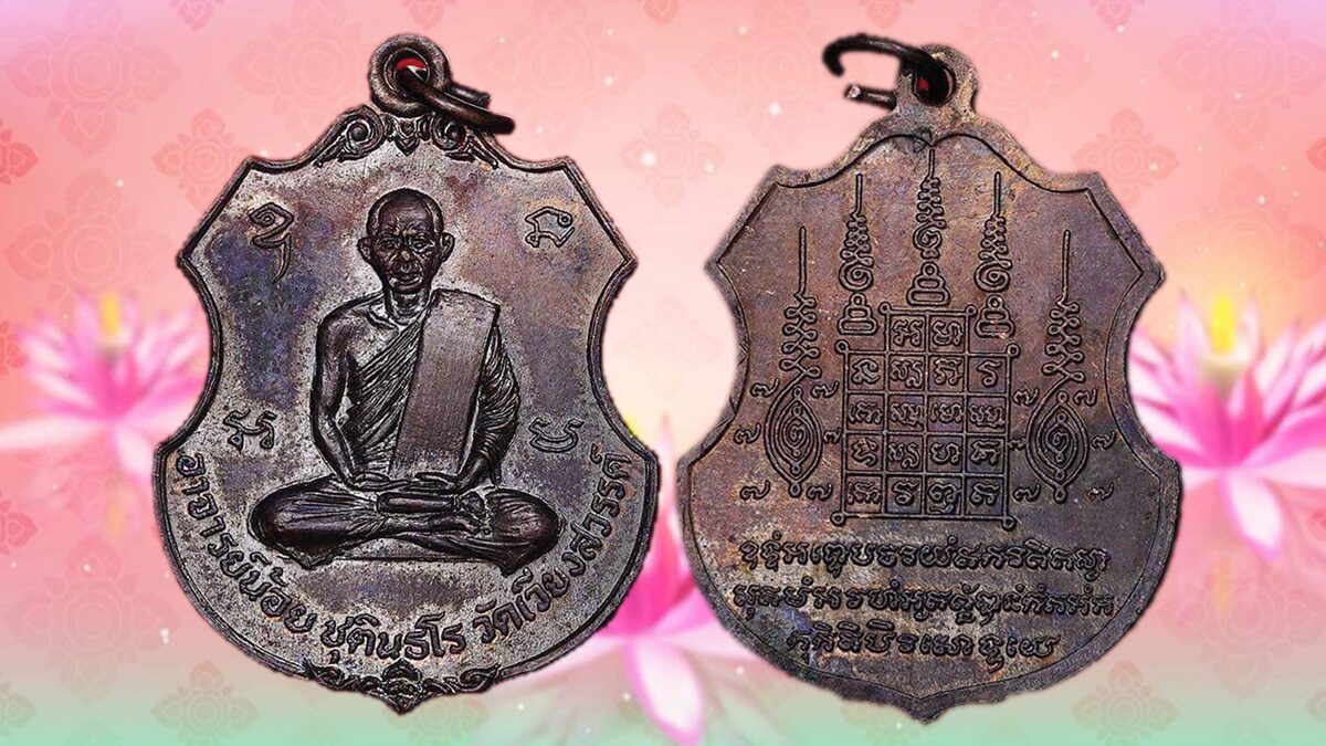 ลักษณะมีหูห่วง ด้านหน้าเหรียญเป็นรูปเหมือนนั่ง ขัดสมาธิ ด้านข้างมีอักขรยันต์ มะอะอุ ใต้รูปเหมือนเขียน คำว่า อาจารย์น้อย ชุตินฺธโร วัดเวียงสวรรค์ ด้านหลัง ประทับด้วยยันต์ครู 5 ยอด เป็นยันต์ประจำตัว นำหัวใจของยันต์โบราณต่างๆ มารวมอยู่ในตาราง ขนาบด้วยยันต์เฑาะว์ ด้านซ้าย-ขวา ล้อมรอบด้วยเลข ๗ ซึ่งแทนโพชฌงค์ 7 คือ สัง วิ ธา ปุ กะ ยะ ปะ หรือหัวใจพระอภิธรรม 7 คัมภีร์ ด้านล่าง ลงคาถายอดมหาอุด เป็นอีกหนึ่งวัตถุมงคลที่ทรงคุณค่า