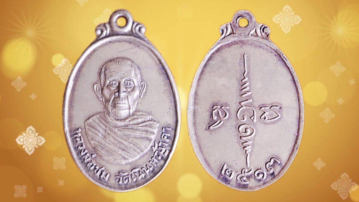 "หลวงพ่อชม ญาณโสภโณ" หรือ "พระครูนิมมานธรรมกิจ" อดีต เจ้าอาวาสวัดเนินหญ้าคา อ.โกรกพระ จ.นครสวรรค์ พระเกจิอาจารย์ที่มีชื่อเสียงเมื่อปี พ.ศ.2513 จัดงานพิธีหล่อรูปเหมือนเท่าตัวจริงขึ้น พร้อมจัดสร้างเหรียญรูปไข่ เนื้อทองเหลือง ปลุกเสกเดี่ยวก่อนตลอดไตรมาสและนำเข้าพิธี พุทธาภิเษกอีกครั้ง เป็นเหรียญปั๊มทรง รูปไข่ เนื้อทองเหลือง มีหูห่วงยกซุ้ม ด้านหน้าเหรียญมีขอบรอบ ตรงกลางมีรูปนูนหลวงพ่อชมห่มคลุมจีวรครึ่งองค์ หันหน้าตรง ด้านล่างเหนือขอบเหรียญมีอักษรไทย เขียนว่า "หลวงพ่อชม วัดเนินหญ้าคา" ส่วนด้านหลังเหรียญมีขอบรอบเช่นเดียวกัน ตรงกลางเหรียญมียันต์เป็นอักขระขอม "อิ สะ หวา สุ" ด้านล่างเหนือขอบเหรียญมีเลขไทย "๒๕๑๓" กำกับอยู่ จัดเป็นเหรียญดีราคาถูก