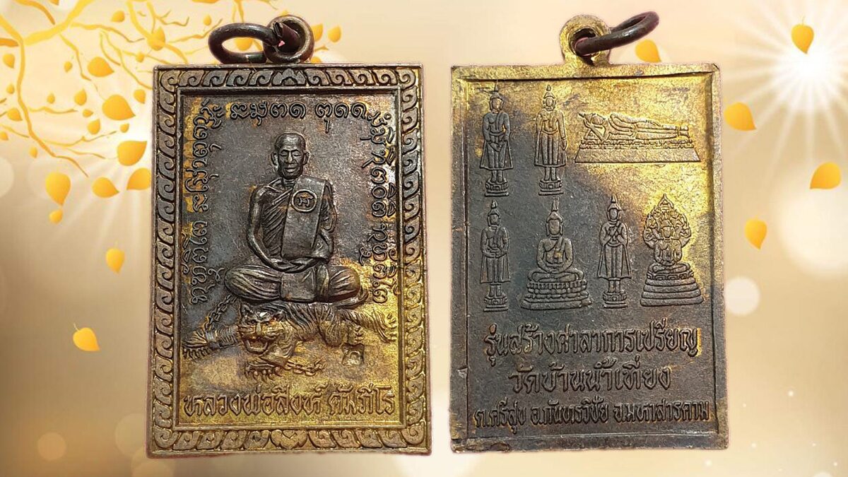 ลักษณะเป็นรูปสี่เหลี่ยมผืนผ้า มีหูห่วง ด้านหน้าบริเวณกลางเหรียญเป็นรูปเหมือน เต็มองค์ ห่มจีวรเฉียง นั่งวิปัสสนาอยู่บนตัวเสือที่ 2 ขาหน้าเสือมีโซ่ที่ขาดล่ามไว้ ด้านล่างสุดมีตัวอักษรเขียนคำว่า หลวงพ่อสิงห์ คัมภีโร และจากด้านขวาของเหรียญขึ้นไปด้านบนวนลงไปด้านซ้ายมีอักขรยันต์ ด้านหลังเป็นภาพพระพุทธรูปปางประจำวัน ด้านล่างเขียนคำว่า รุ่นสร้างศาลาการเปรียญ วัดน้ำเที่ยง ต.ศรีสุข อ.กันทรวิชัย จ.มหาสารคาม จัดเป็นวัตถุมงคลอีกรุ่นที่ได้รับความนิยมสูง
