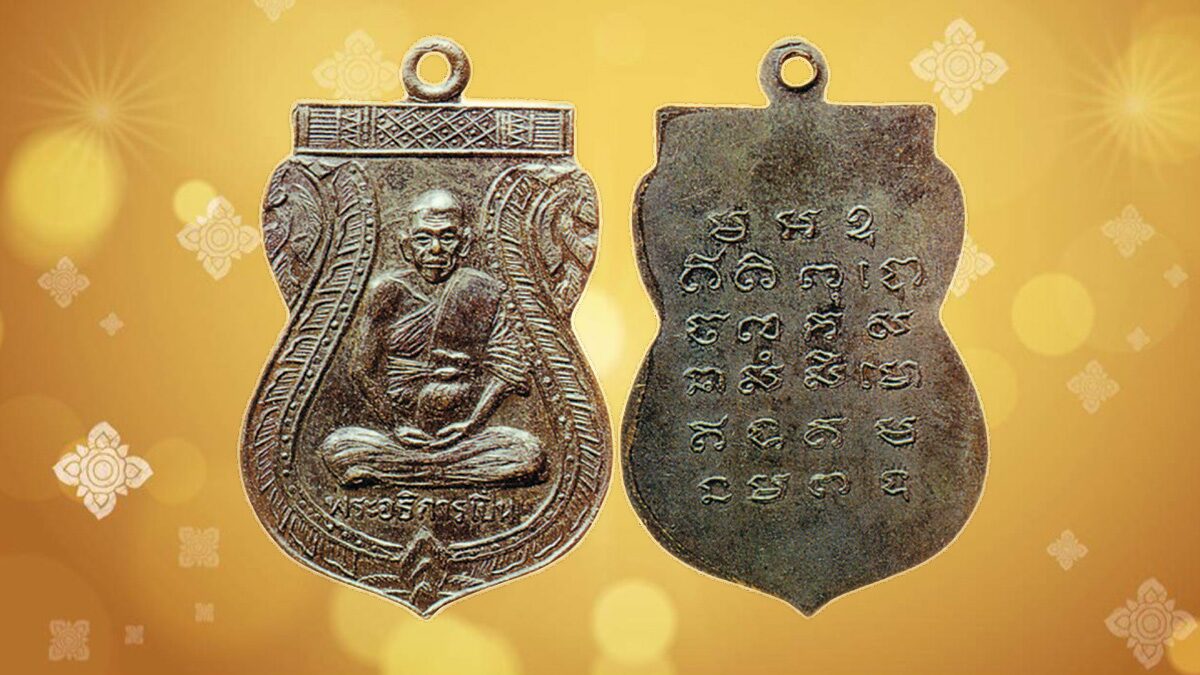 ด้านหน้าเหรียญเป็นรูปเหมือนนั่งขัดสมาธิ ขอบกระหนก ด้านบนมีหูเหรียญ อักษรใต้ฐานเขียนว่า "พระอธิการเปิ่น" ด้านหลังเหรียญ เป็นยันต์อุ 23 อักขระ รุ่นนี้ด้านหลังแบ่งออกเป็น 2 บล็อก คือ บล็อกหลังเรียบและบล็อกขี้กลาก ได้รับความนิยมเป็นอย่างยิ่ง