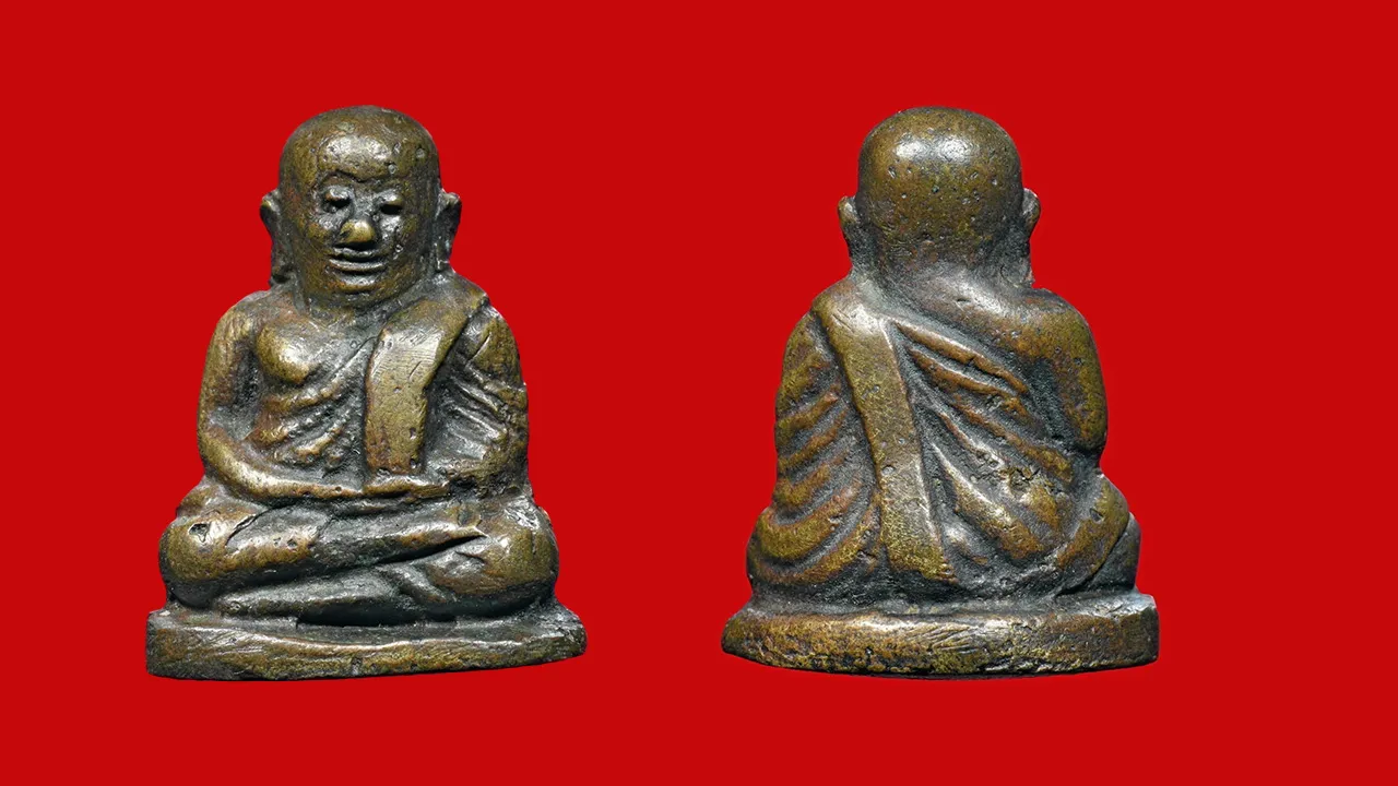 ที่สร้างด้วยวิธี ขึ้นหุ่น ถอดพิมพ์ เข้าช่อ เทหล่อแบบโบราณ ลักษณะเป็นรูปจำลององค์หลวงพ่อเงิน นั่งสมาธิราบลอยองค์ แยกพิมพ์เป็น ๒